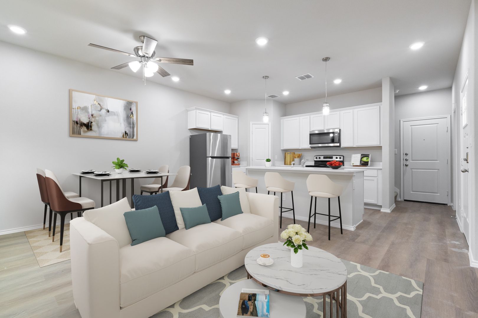 This brand-new, two-story home is beautifully situated on a tree covered lot, offering both privacy and curb appeal. With 3 bedrooms, 2.5 baths with the primary having a stand alone shower, and a 2-car garage, this thoughtfully designed residence features a spacious backyard perfect for relaxing or entertaining outdoors. Inside, you'll find smooth, sleek granite countertops, luxury vinyl plank floors, modern finishes, stainless steel appliances, and convenient washer/dryer hookups in the utility room. This stunning new construction is ready to be called home!